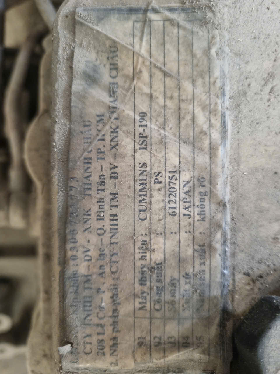 • BÁN ĐỘNG CƠ 190HP Cummins ISP-190