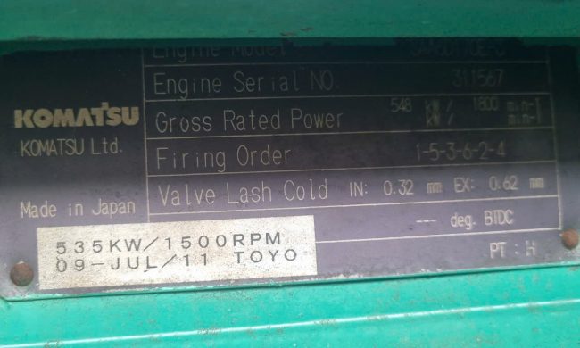 • ĐỘNG CƠ DẦU 548 kW KOMATSU