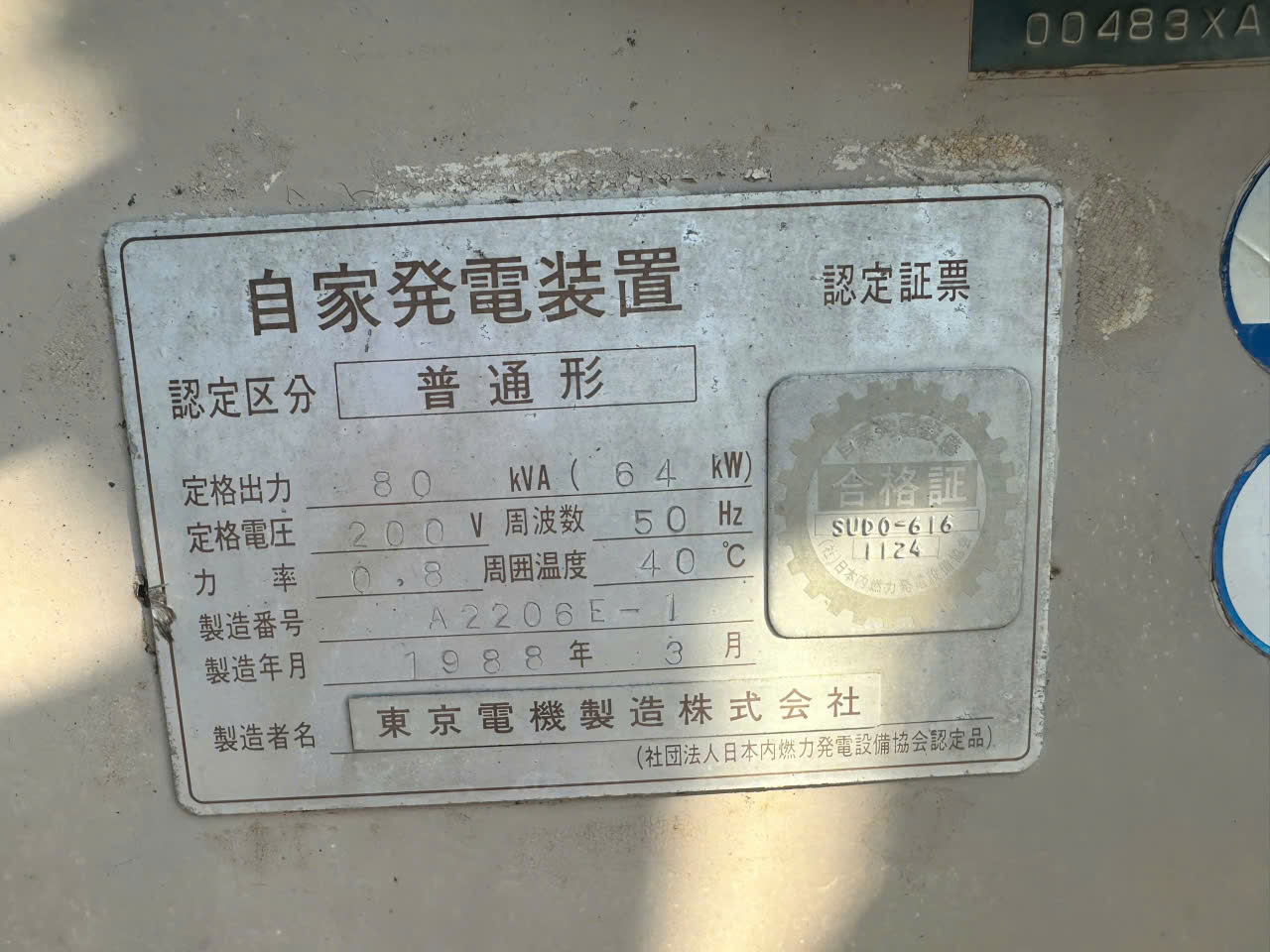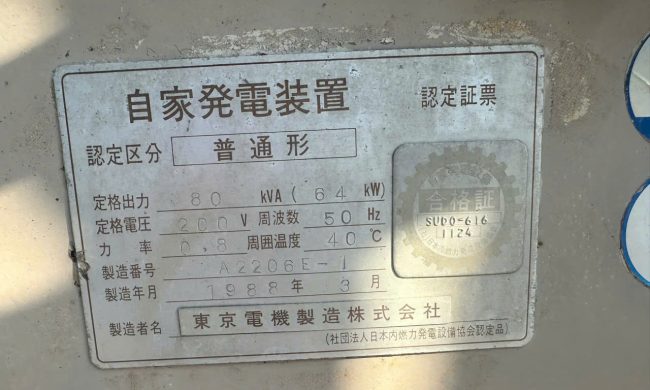 • 👉 Đây là máy phát điện 80 kVA, điện áp 200V, dùng hệ 50Hz (chuẩn Nhật).