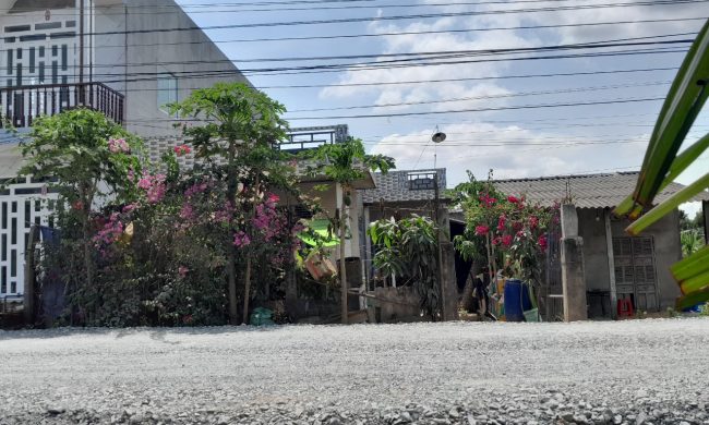 Nhà dân đông đúc. Đường Xe tải.