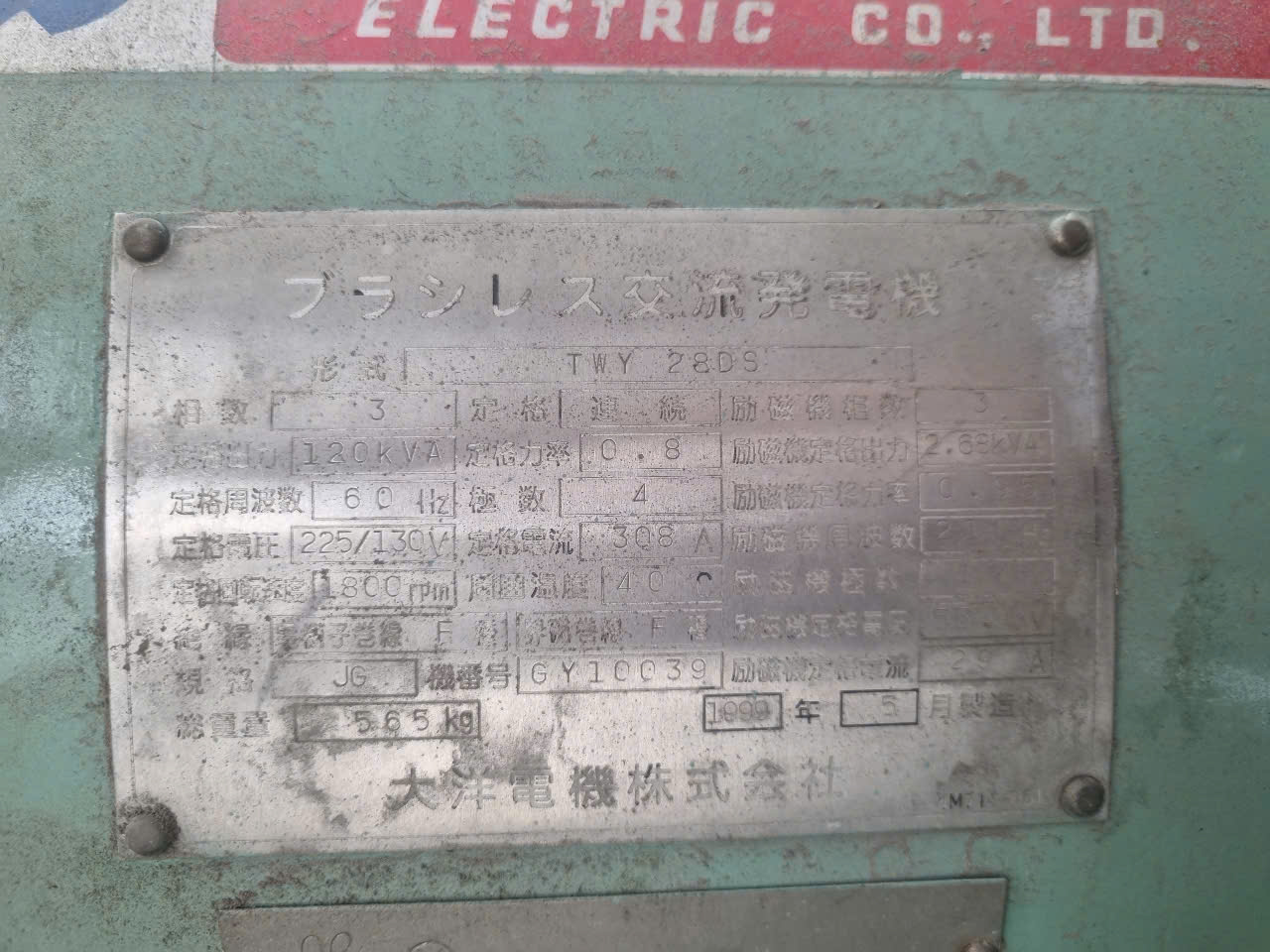 • Công suất tổ máy: 120 kVA